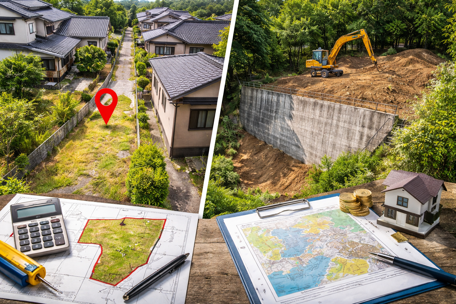 - 高低差は造成費や安全性のリスクにつながる